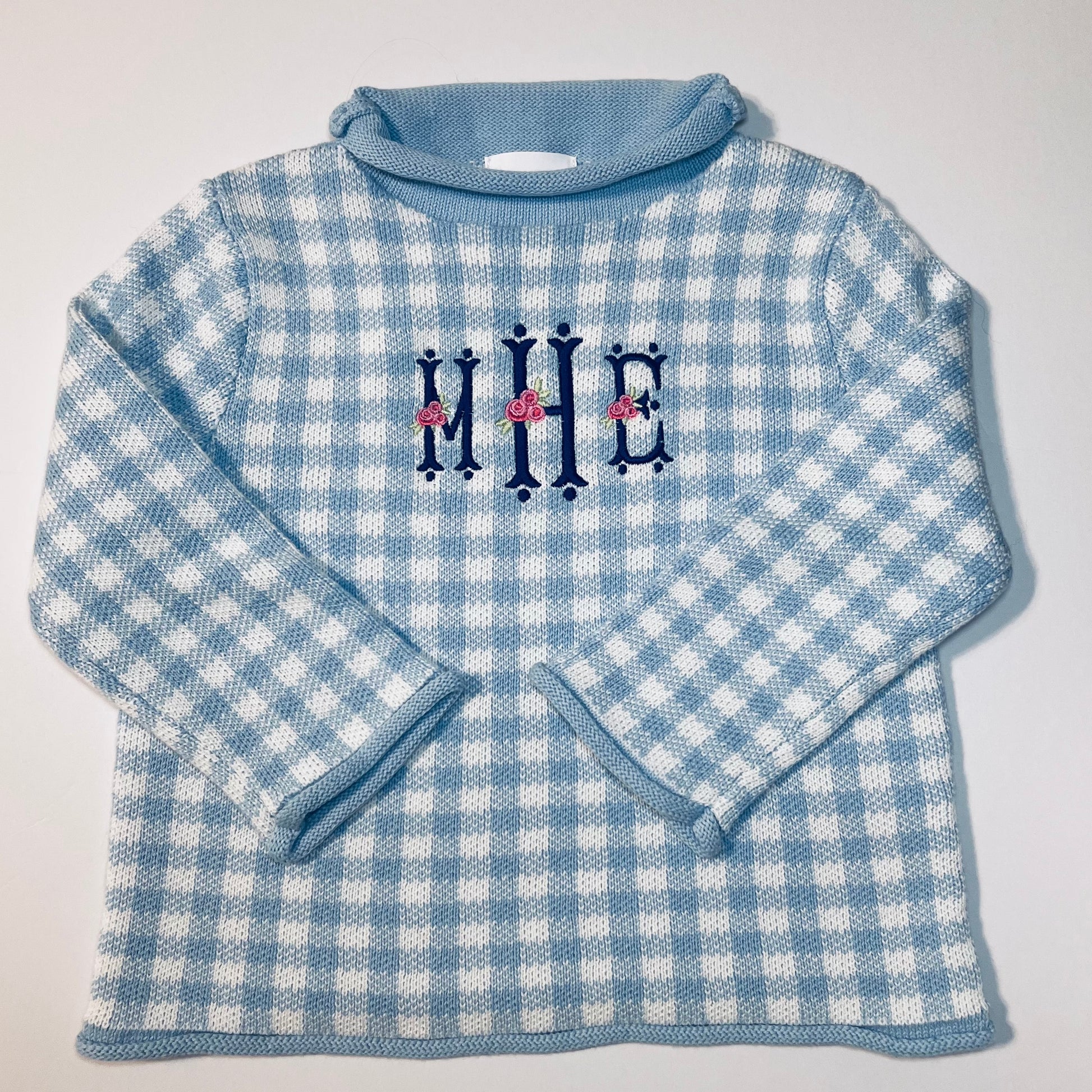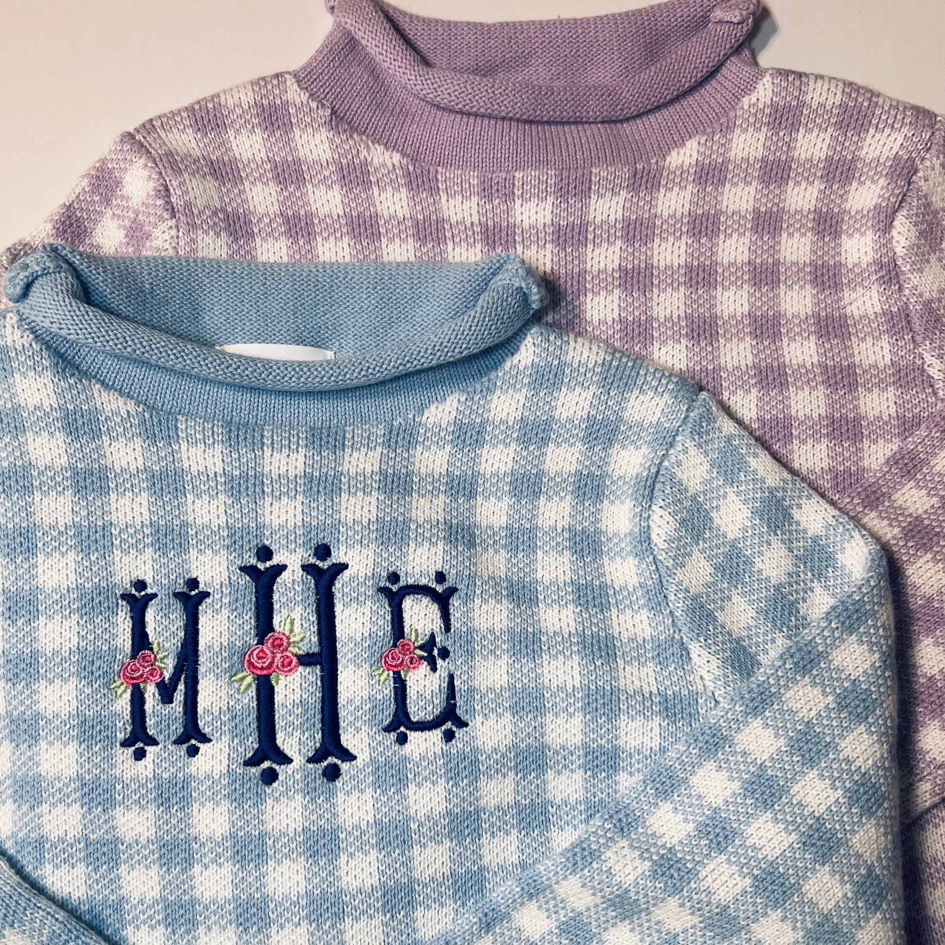 Classic, cozy, and perfectly personal. Our gingham rollneck sweaters are the sweetest staple for every little one’s wardrobe. Available in light blue or light purple, each sweater features a timeless neckline and soft knit body—designed for everyday wear with a touch of charm.