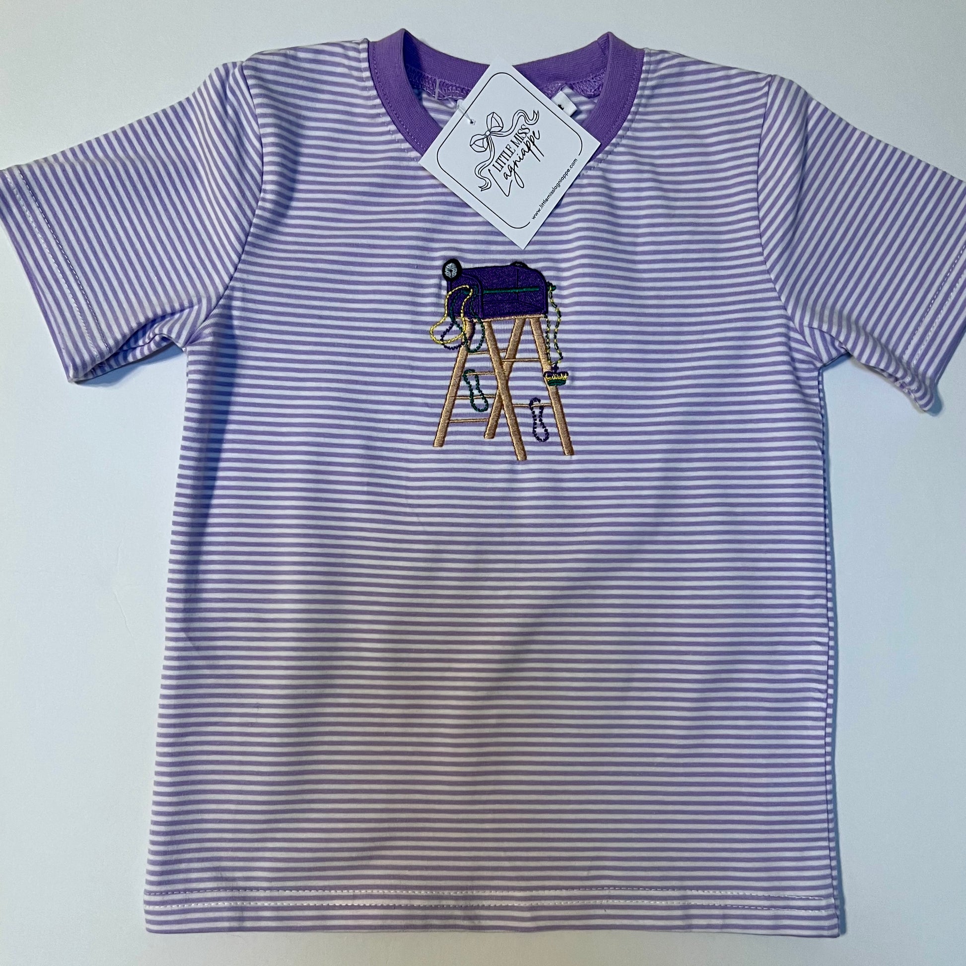 Bring a little Mardi Gras magic to their everyday style! This purple striped kids tee is soft, playful, and full of Carnival charm. Featuring a beautifully embroidered Mardi Gras ladder — a beloved parade-day tradition — it’s perfect for the boys & girls who love watching the Avenue from the best seat in the house.